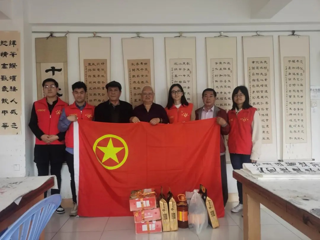 中廣核核電運營有限公司團委組織志愿者前往深圳市大鵬新區慰問老黨員。期間,老黨員們將自己的書法作品《黨恩春蕩,百姓豐和》和《青春》贈送給志愿者,表達了他們對黨和國家的感恩之情,以及對青年團員們發揮青春活力、奮斗進取的殷切期望。