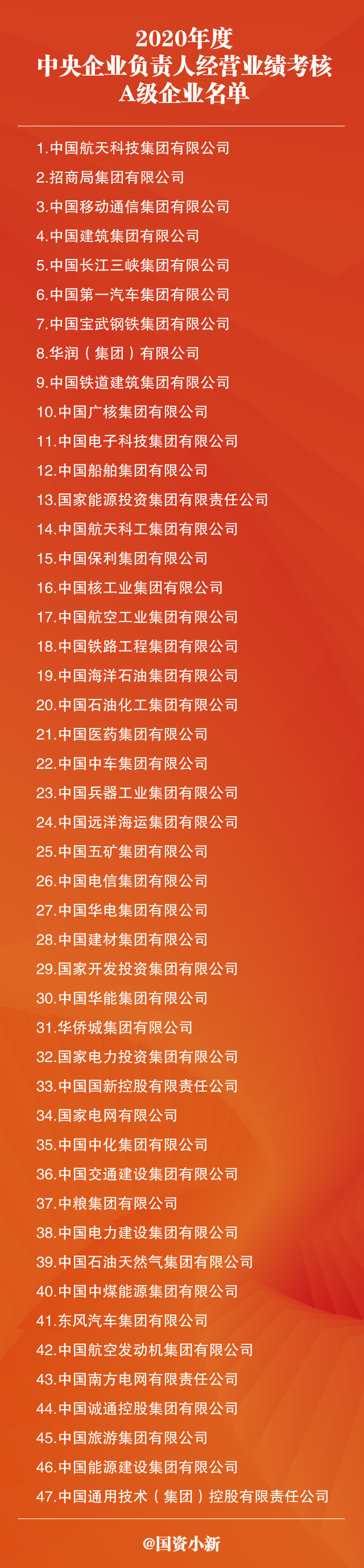 附2020年度中央企業(yè)負責人經(jīng)營業(yè)績考核A級企業(yè)名單: