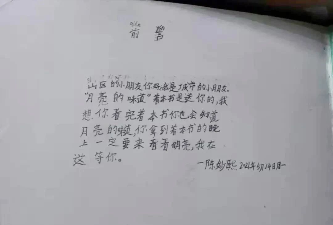 ▲陳斌的女兒將共賞一輪明月的邀請寫在圖書扉頁
