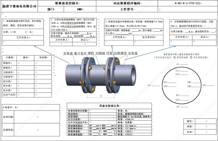 寧德核電開展維修質(zhì)量控制卡編制工作,在“標(biāo)準(zhǔn)不打折、質(zhì)量不下降、環(huán)節(jié)不缺失”的基礎(chǔ)上,減輕工作負(fù)責(zé)人執(zhí)行維修程序的負(fù)擔(dān),提升效率的同時(shí)實(shí)現(xiàn)質(zhì)量關(guān)鍵點(diǎn)“可視化”。歷時(shí)兩個(gè)月反復(fù)論證,完成首份維修質(zhì)量控制卡,將乏燃料水池冷卻泵聯(lián)軸器對(duì)中檢查工作多達(dá)9頁(yè)的維修程序文件精簡(jiǎn)為一張圖表,清晰簡(jiǎn)潔地展示設(shè)備結(jié)構(gòu)、質(zhì)量標(biāo)準(zhǔn)、操作要求等。目前,現(xiàn)場(chǎng)已完成244份維修質(zhì)量控制卡的使用,相關(guān)檢修工作均達(dá)標(biāo)準(zhǔn)要求,并獲得工作負(fù)責(zé)人的認(rèn)可。