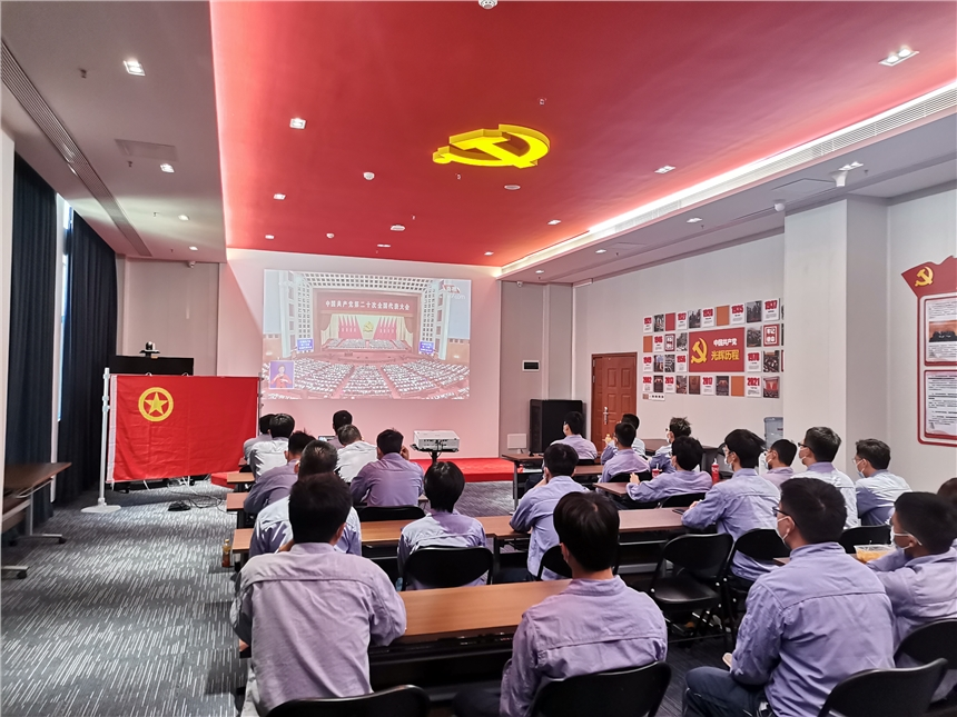 中廣核環(huán)保產(chǎn)業(yè)有限公司團(tuán)委組織團(tuán)員青年等通過集中觀看、網(wǎng)絡(luò)收看等方式觀看黨的二十大開幕直播。