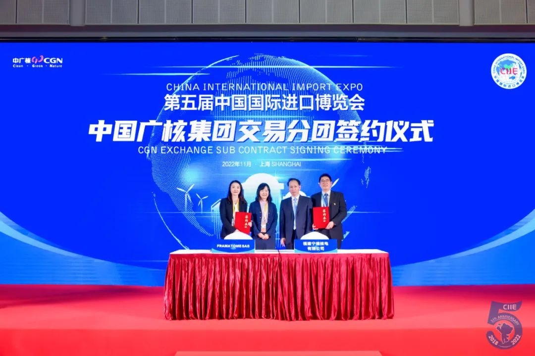 11月7日,第五屆中國(guó)國(guó)際進(jìn)口博覽會(huì)中國(guó)廣核集團(tuán)交易分團(tuán)簽約儀式在國(guó)家會(huì)展中心(上海)舉行。