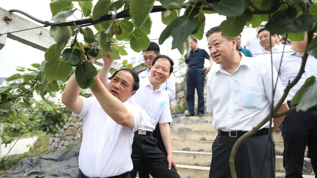 ▲中廣核黨委書記、董事長楊長利到廣西樂業(yè)縣甘田鎮(zhèn)板洪村脫貧奔康產(chǎn)業(yè)園詳細了解產(chǎn)業(yè)園運營模式、分布情況及幫扶成效