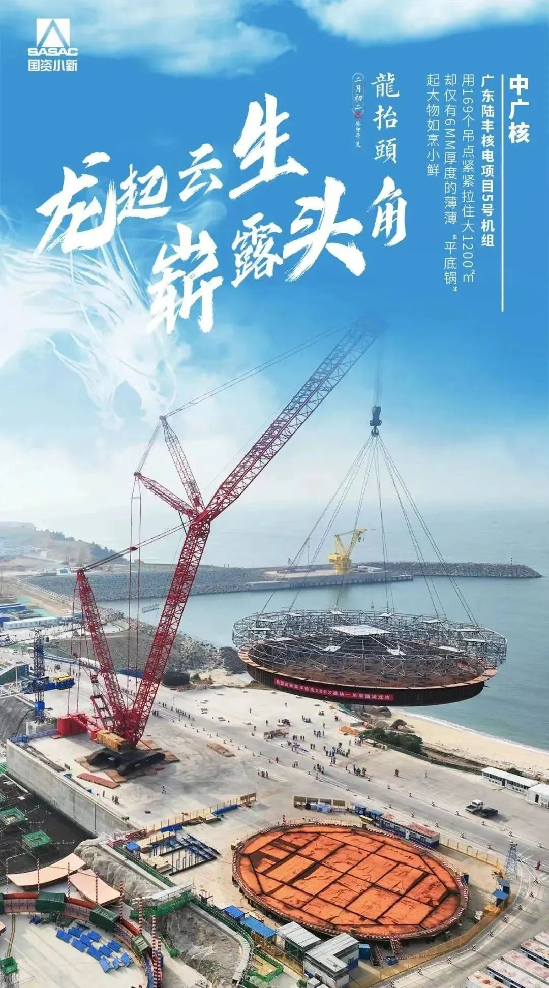 ▲國資小新刊發陸豐核電第一吊——5號機組核島鋼襯里模塊一吊裝
