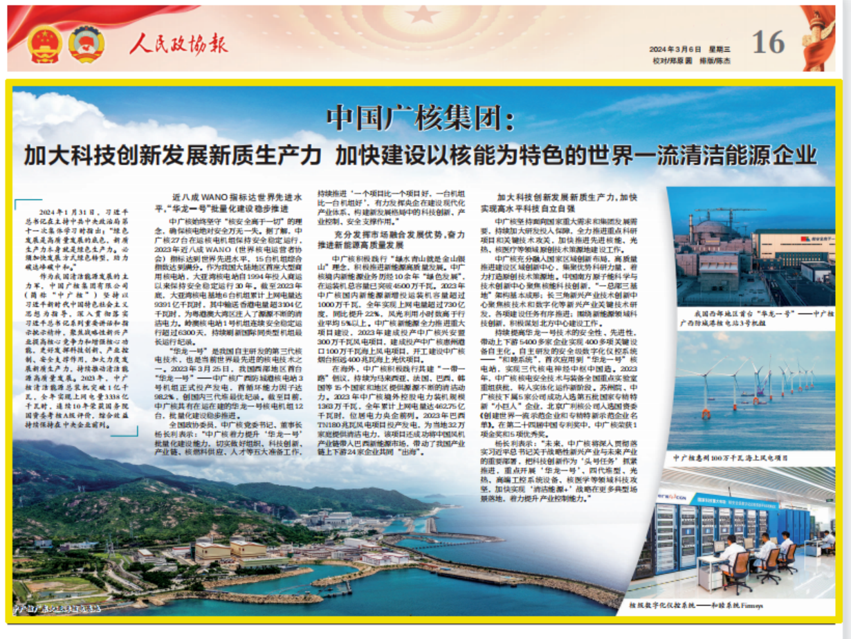 《中國(guó)廣核集團(tuán):加大科技創(chuàng)新發(fā)展新質(zhì)生產(chǎn)力加快建設(shè)以核能為特色的世界一流清潔能源企業(yè)》