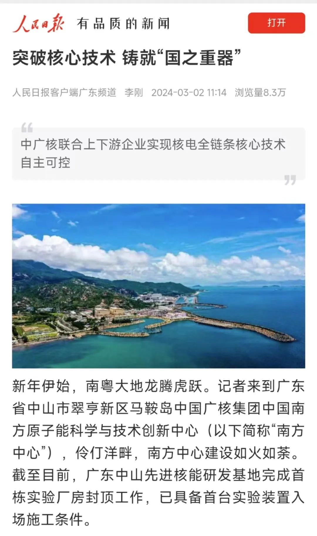 中廣核黨委書記、董事長楊長利表示,新質(zhì)生產(chǎn)力的形成,離不開技術(shù)革命性突破、要素創(chuàng)新性配置以及產(chǎn)業(yè)深度轉(zhuǎn)型升級。中廣核充分融入國家區(qū)域創(chuàng)新布局,集聚優(yōu)勢科研力量,著力打造原創(chuàng)技術(shù)策源地,以科技創(chuàng)新引領(lǐng)核能新質(zhì)生產(chǎn)力發(fā)展。中廣核充分融入國家區(qū)域創(chuàng)新布局,集聚優(yōu)勢科研力量,著力打造原創(chuàng)技術(shù)策源地。除南方中心外,中廣核還高質(zhì)量推進(jìn)建設(shè)長三角新興產(chǎn)業(yè)技術(shù)創(chuàng)新中心,聚焦核技術(shù)和數(shù)字化等新興產(chǎn)業(yè)關(guān)鍵技術(shù)研發(fā),各項建設(shè)任務(wù)有序推進(jìn);圍繞新能源領(lǐng)域科技創(chuàng)新,積極謀劃北方中心建設(shè)工作。