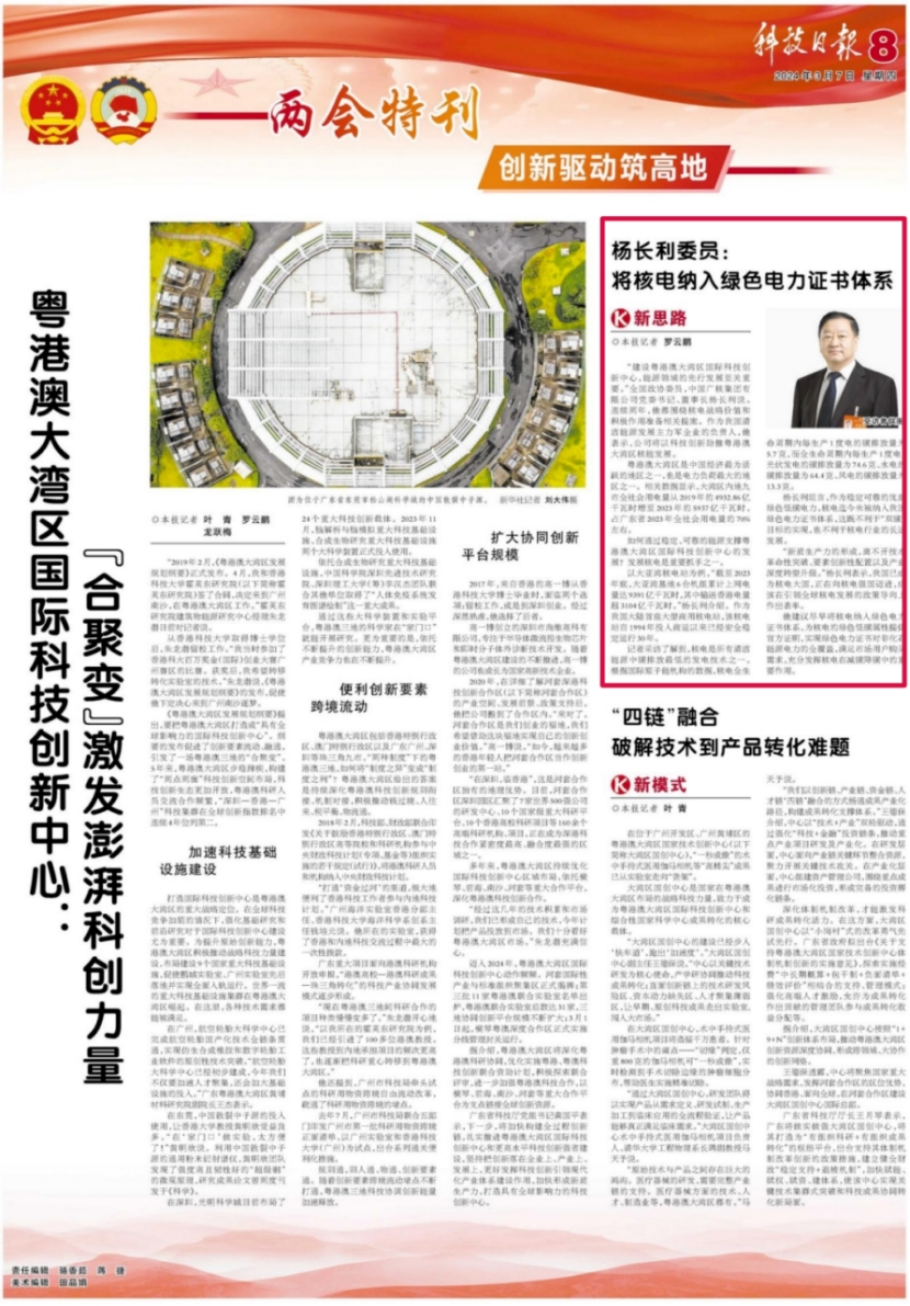 “建設(shè)粵港澳大灣區(qū)國際科技創(chuàng)新中心,能源領(lǐng)域的先行發(fā)展至關(guān)重要。”全國政協(xié)委員,中國廣核集團有限公司黨委書記、董事長楊長利說。連續(xù)兩年,他都圍繞核電戰(zhàn)略價值和積極作用準備相關(guān)提案。作為我國清潔能源發(fā)展主力軍企業(yè)的負責(zé)人,他表示,公司將以科技創(chuàng)新助推粵港澳大灣區(qū)核能發(fā)展。
