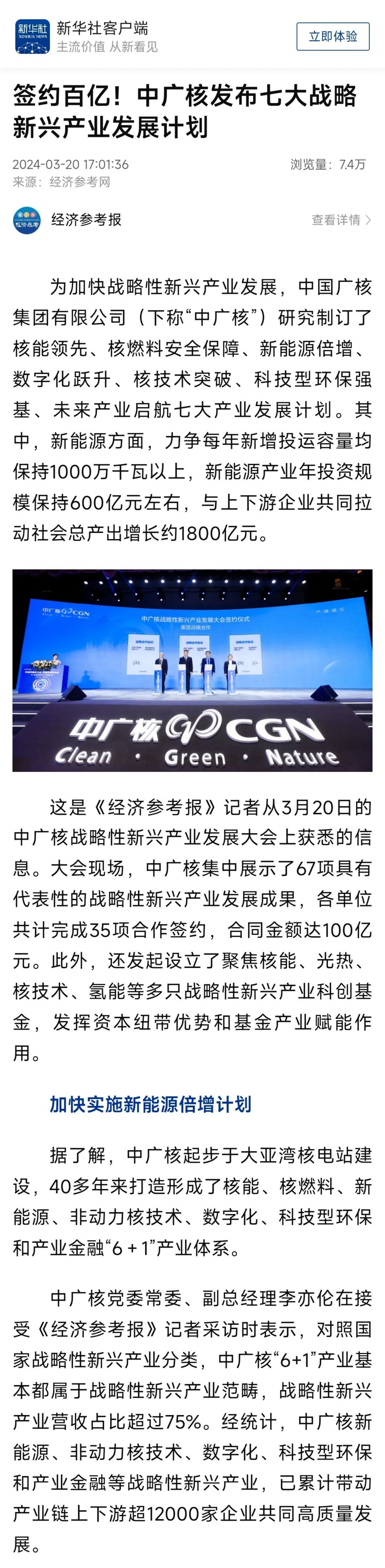 中廣核新能源、非動力核技術、數字化、科技型環保和產業金融等戰略性新興產業,已累計帶動產業鏈上下游超12000家企業共同高質量發展。人民日報、新華社等主流媒體聚焦報道。
