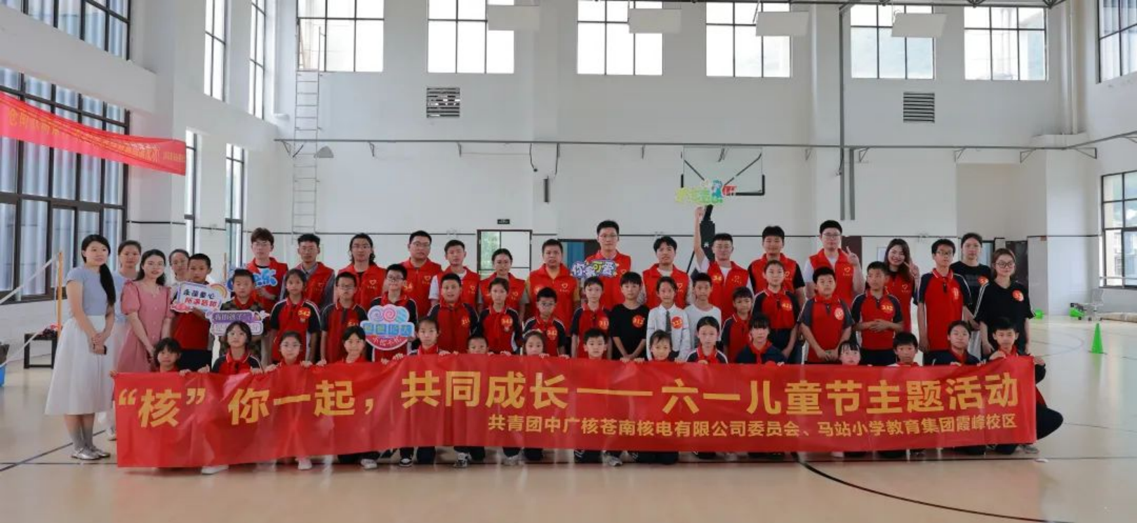 5月31日,兒童節前一天,蒼南核電專門聯合溫州市蒼南縣馬站鎮第二小學開展了兒童節主題活動,34名留守兒童與核電志愿者結對,共同參與兩人三足、一路有你、籃球接力等游戲。