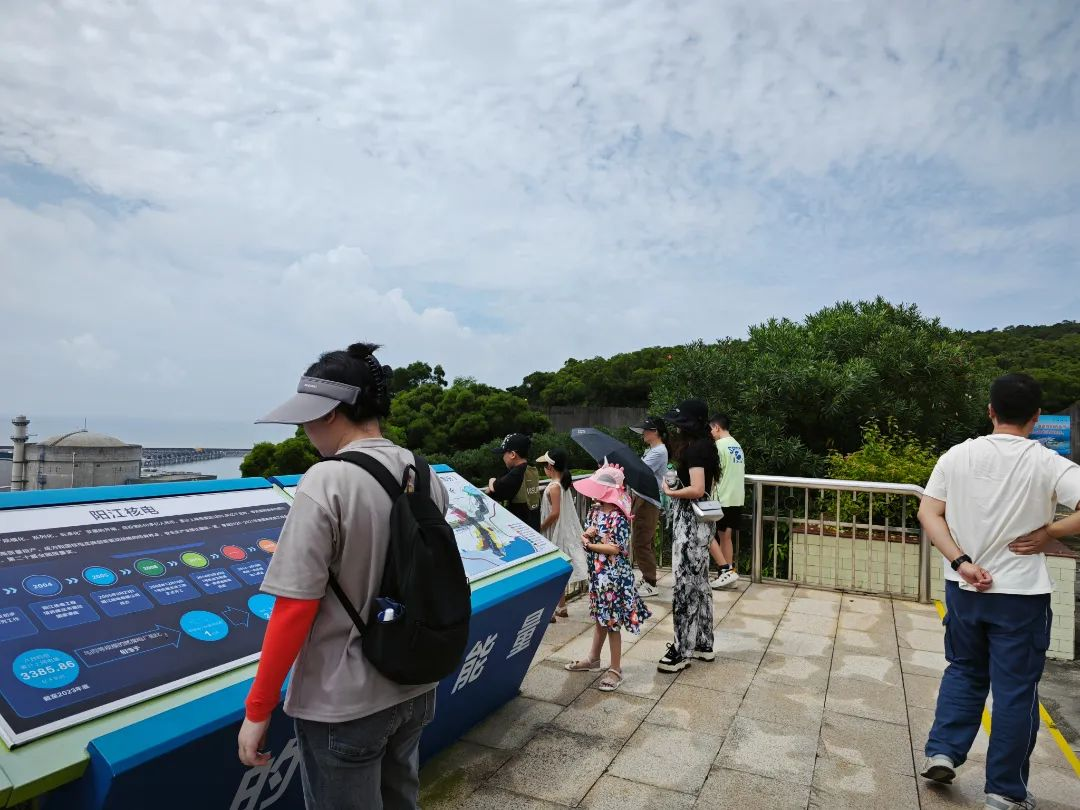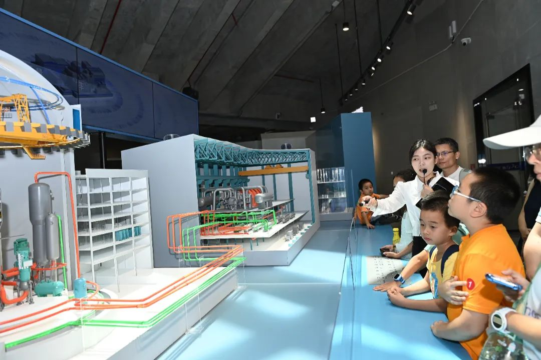 截至目前,大亞灣核電基地通過“硬核 Walk”預約小程序預約參觀的人數達到600人。在大亞灣核電基地,游客們不僅能切身感受到中廣核始于大亞灣核電站的發展歷程,還能學習核能領域的科普知識。在觀景平臺上,游客們將大亞灣核電站、嶺澳核電站一期、二期的雄偉景象盡收眼底。由于8月正值暑假,基地主要以親子科普活動為主,家長帶著孩子們探索神秘的核能領域,既能增長知識又增進了親子關系。
