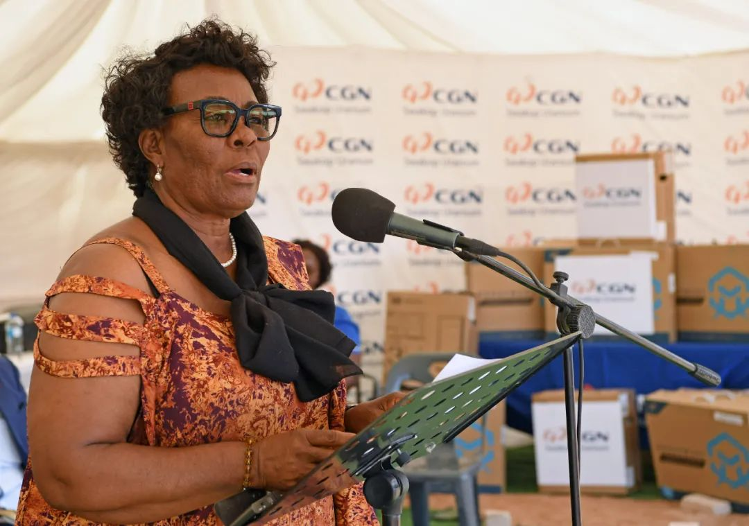 ▲納教育、文化和藝術(shù)部部長(zhǎng)Ester Anna Nghipondoka在捐贈(zèng)儀式上致辭