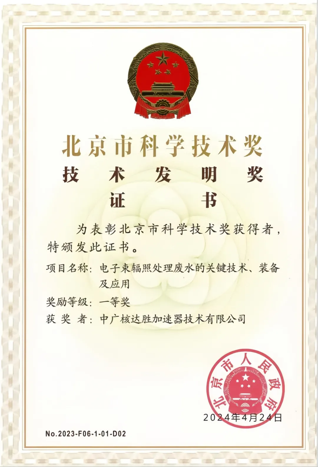 中廣核獲北京市科學技術獎技術發明獎一等獎