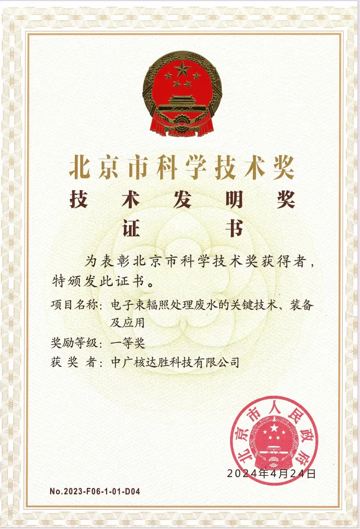 近期,中廣核連續收獲科學技術領域獎項!在11月19日召開的北京市科技大會暨科學技術獎勵大會上,由清華大學提名,中廣核技下屬達勝加速器技術有限公司、達勝科技有限公司參與完成的“電子束輻照處理廢水的關鍵技術、裝備及應用”項目斬獲北京市科學技術獎技術發明獎一等獎。此外,從蘇州市科技局也傳來喜訊,蘇州熱工研究院有限公司牽頭完成的“核能用先進去污、防護及處理一體化關鍵技術研發及應用”項目榮獲江蘇省科學技術獎三等獎。
