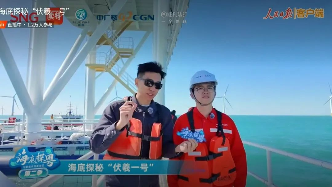 12月6日上午,深圳報業集團直播欄目海底探“粵”第二季(SEA You In GBA)走進全國首個“風漁融合”型海洋牧場項目——中廣核汕尾“伏羲一號”風漁融合項目。這是全國首次以海底直播的方式探秘“伏羲一號”,為觀眾揭開這座海上風電與海洋牧場相結合的養殖平臺,在蔚藍的大海中實現“海上‘生綠電’,海下‘魚滿艙’”的奧秘。本次線上直播活動,吸引近千萬人次觀看,人民日報、南方日報、深圳特區報等150余家媒體參與直播。