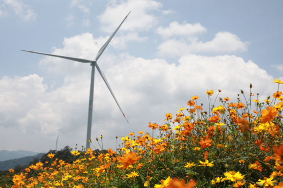 ▲樂業(yè)風(fēng)電項目所在地草王山——風(fēng)車花海景觀