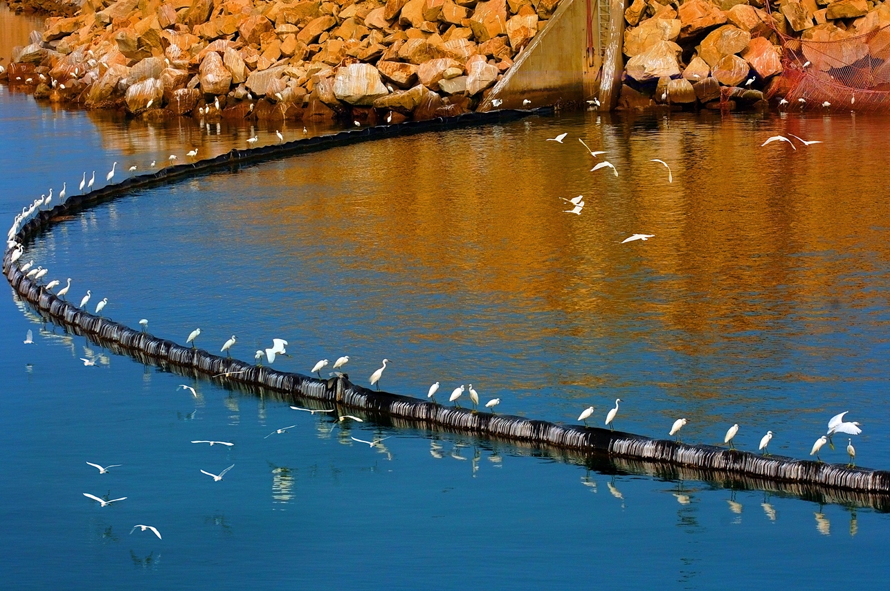白鷺和防波堤